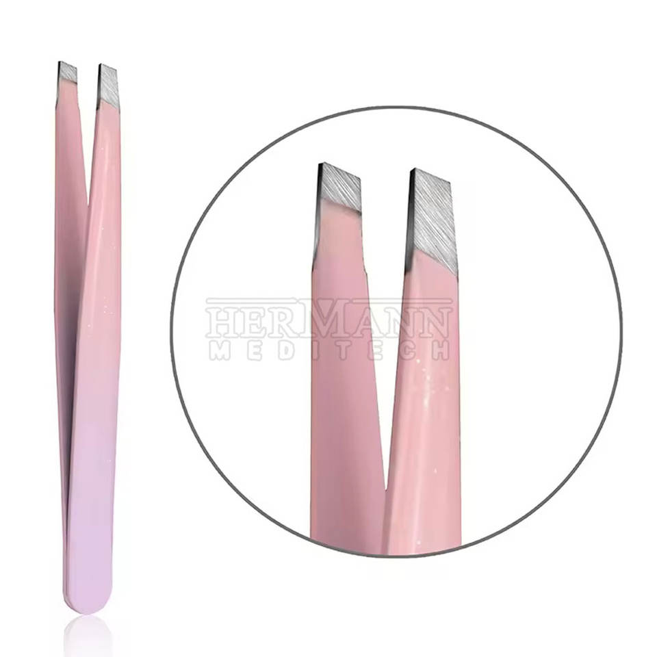 แหนบถอนขนคิ้วสแตนเลสคุณภาพสูง ปลายเฉียง ทนทาน ใช้งานได้แม่นยำ เหมาะสำหรับร้านเสริมสวยและการดูแลขนคิ้วที่บ้าน