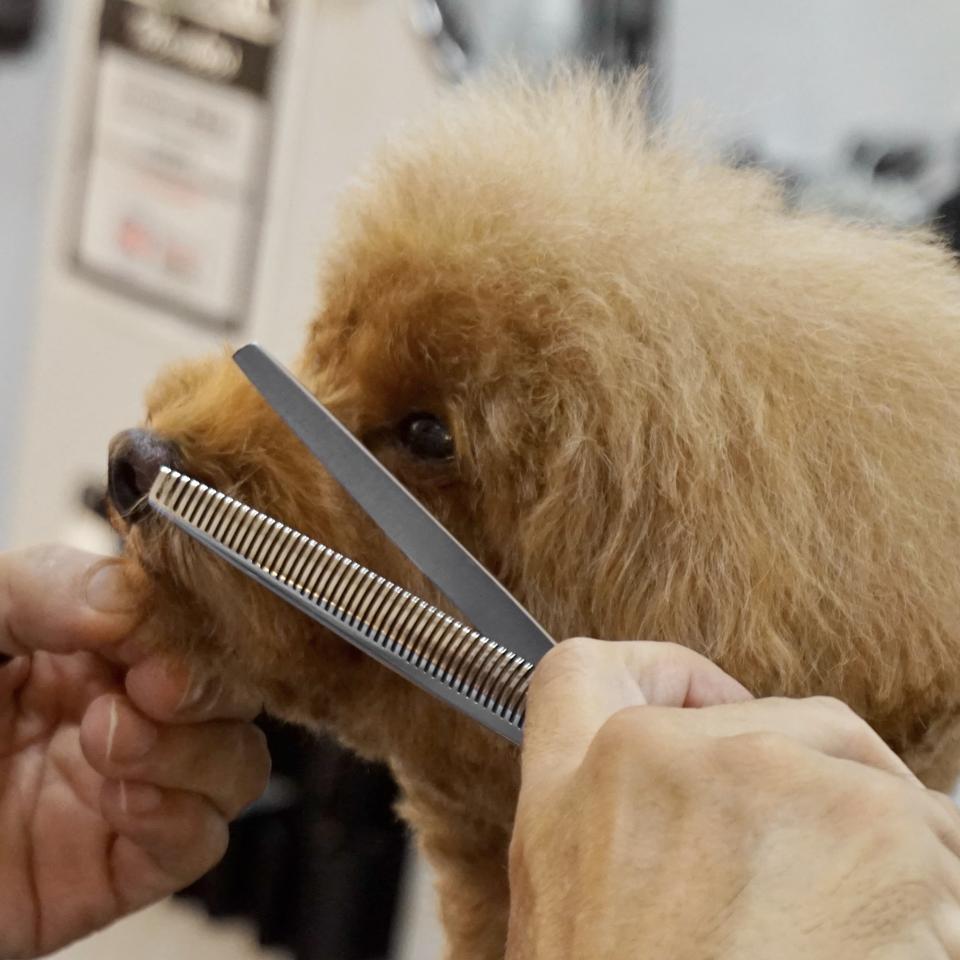 ชุดกรรไกรตัดตรงสเตนเลสสตีลอุปกรณ์เสริมสวยผอมบางสำหรับสุนัขแมวบรรจุภัณฑ์จำนวนมาก