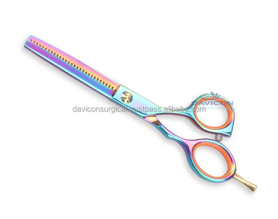 กรรไกรซอยผมสแตนเลสคุณภาพสูงระดับมืออาชีพ สีรุ้ง อุปกรณ์เสริมสวย โดย DAVICON ENTERPRISES