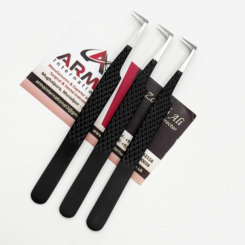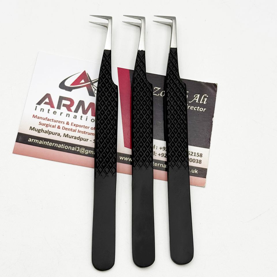 แหนบต่อขนตาปลายแหลมสีเงินเคลือบสีดำด้านแบบมืออาชีพ ขายดี รุ่น L สำหรับต่อขนตาแบบ Boot Volume ที่ยั่งยืนได้
