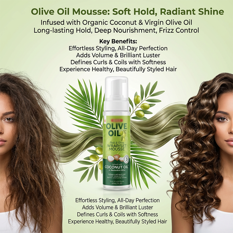 มูสจัดแต่งทรงผมสูตรอ่อนโยนสำหรับผู้มีผมแพ้ง่าย ผสมน้ำมันมะกอกและมะพร้าว - ช่วยลดการชี้ฟู ฟื้นฟูความเงางาม จัดทรงอยู่ทรงนาน