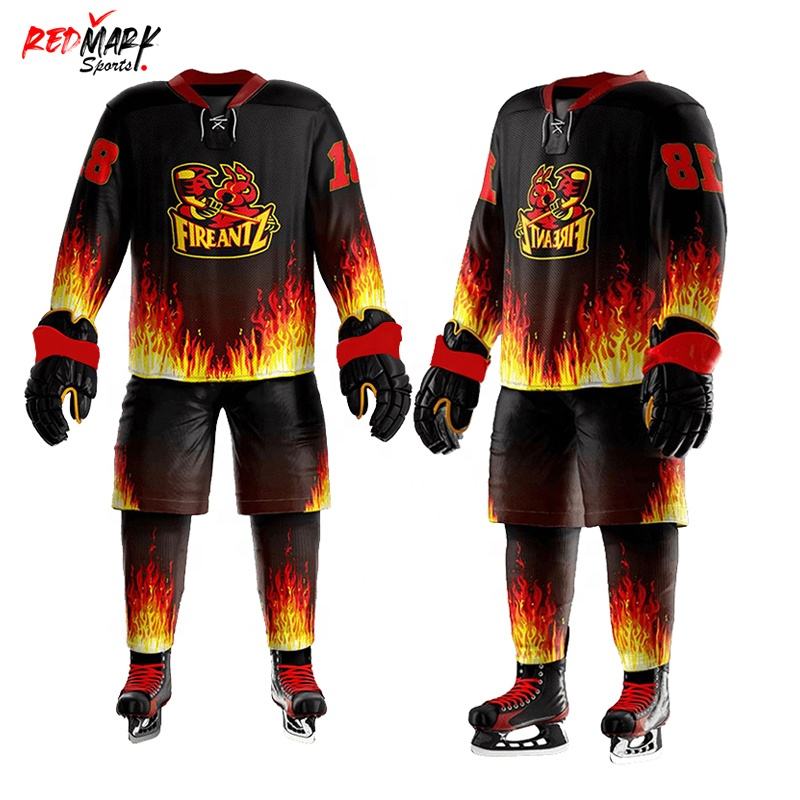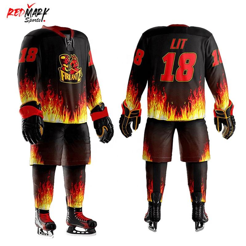 ชุดยูนิฟอร์มฮอกกี้น้ำแข็งระดับมืออาชีพ พิมพ์ลายใบไม้แห้งด้วยเทคนิค Sublimation วัสดุไนลอน/แคชเมียร์ สีตามสั่ง ชื่อทีม คุณภาพสูง
