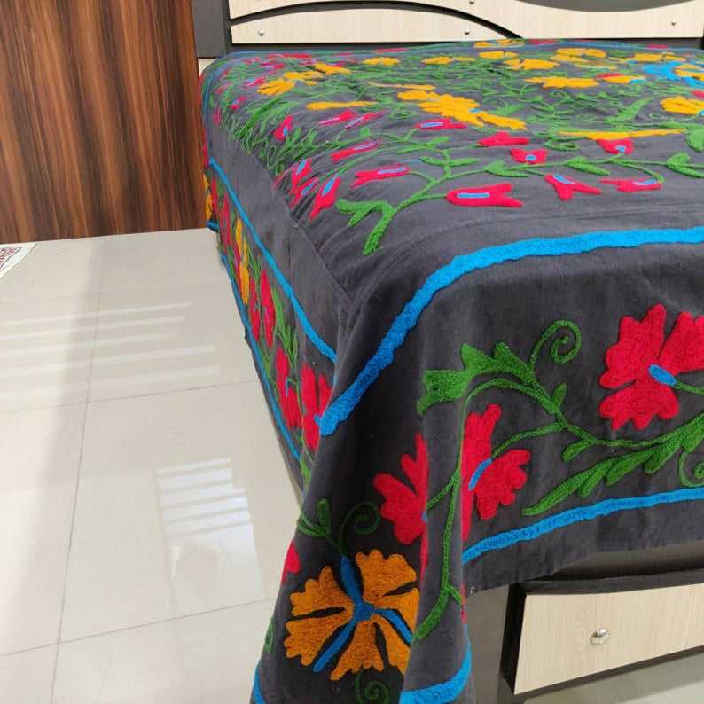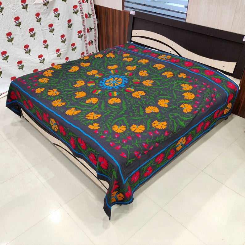 ชุดเครื่องนอนผ้าปูที่นอนปักลายศิลปะอินเดียแบบมืออาชีพ ผ้าฝ้าย 100% ของตกแต่งบ้าน ผ้าคลุมเตียงแบบโบโฮ ผ้าปูเตียงซูซานี