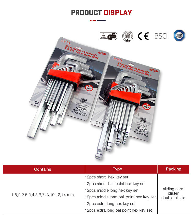 ชุดกุญแจหกเหลี่ยมตัวชี้วัดสำหรับอุตสาหกรรมมืออาชีพประแจอัลเลนปลายแบนหัวกลมใช้งานได้จริงสำหรับงานต่างๆ