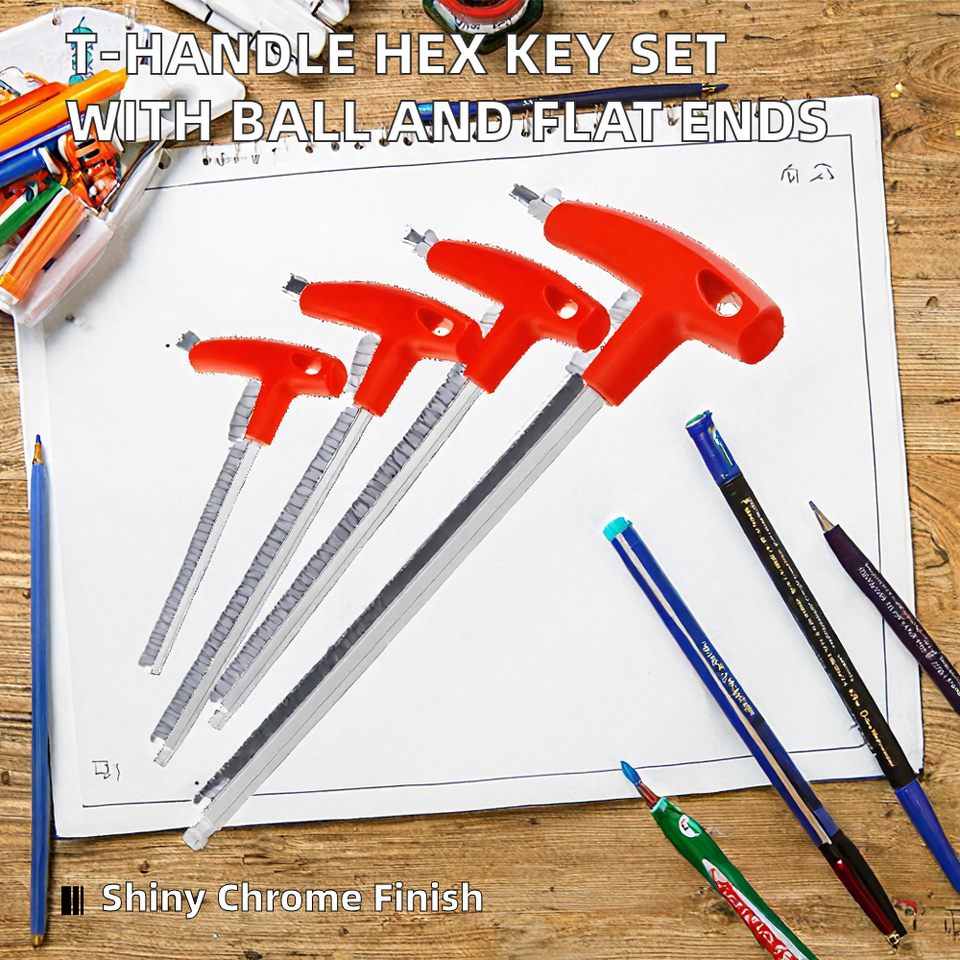 ชุดประแจหกเหลี่ยมแบบมือจับตัวที สำหรับงานอุตสาหกรรม ปลายบอลและปลายแบน ขนาดเมตริกและอิมพีเรียล ผลิตจากเหล็กโครเมียมวาเนเดียม ชุบโครเมียม