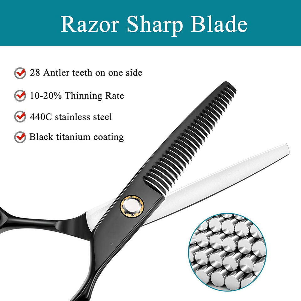 กรรไกรตัดผมเหล็กสแตนเลสขนาด6นิ้วแบบมืออาชีพจากญี่ปุ่นกรรไกรซอยบางพร้อมยางทื่อสำหรับใช้ในร้านเสริมสวย