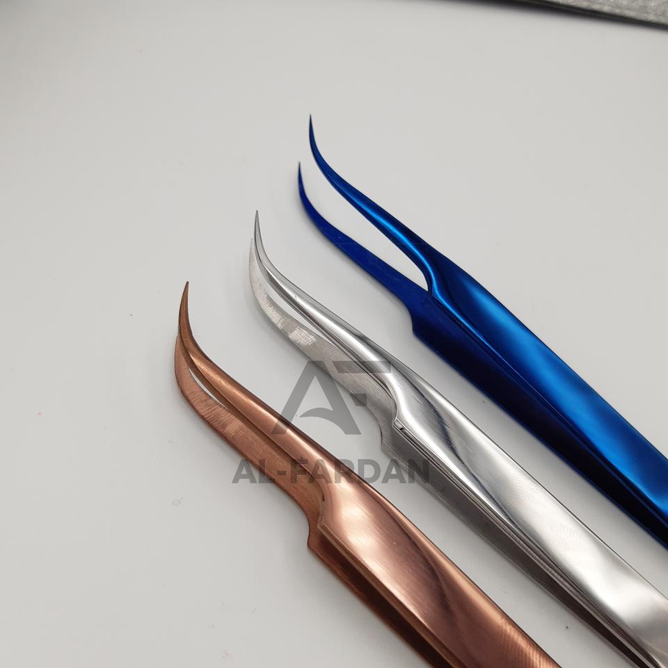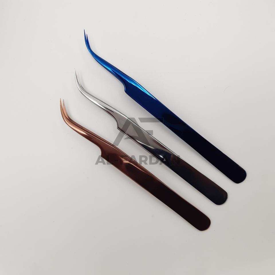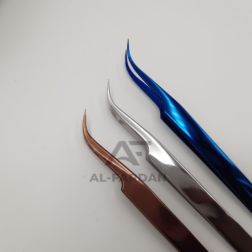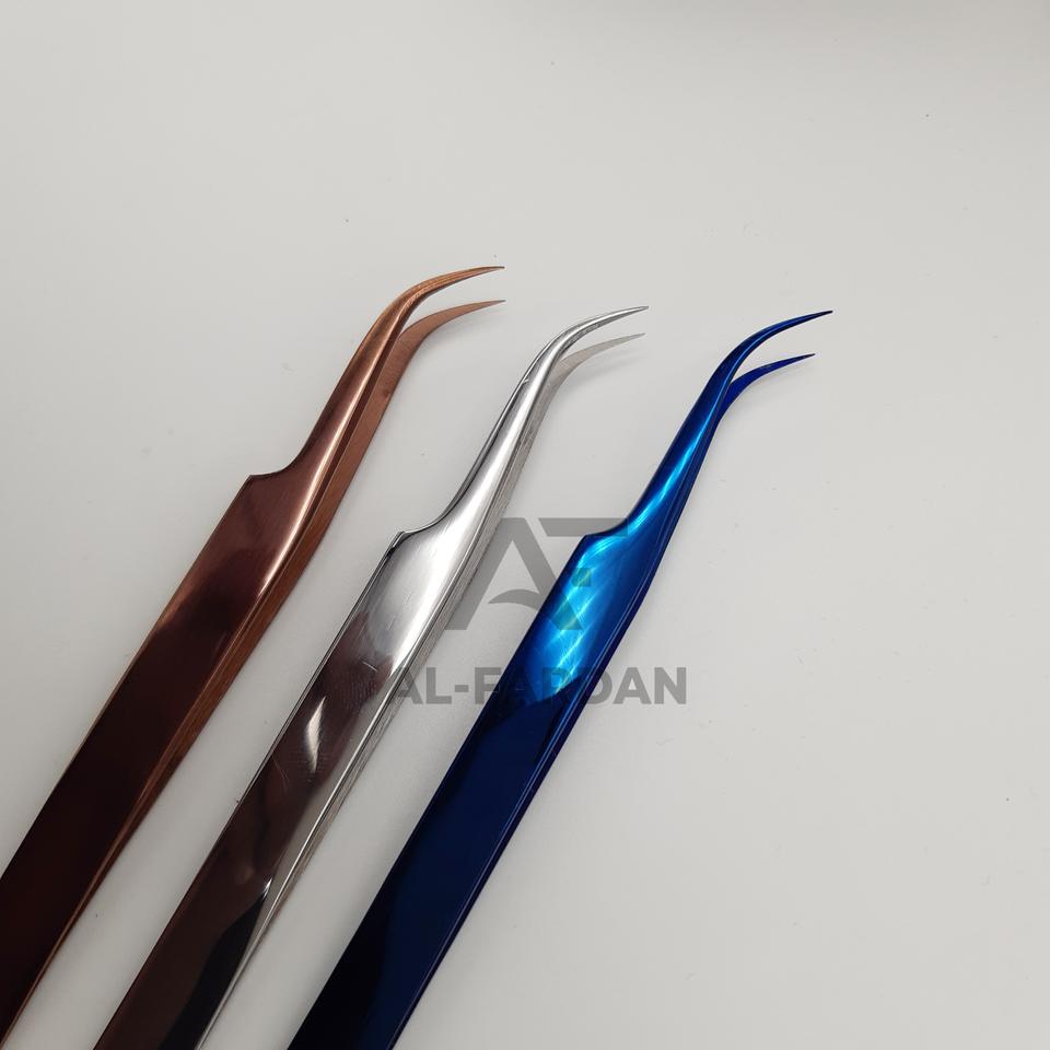 แหนบต่อขนตาสแตนเลสญี่ปุ่นระดับมืออาชีพ รับทำโลโก้ แข็งแรง โค้งงอ สีพลาสม่า ปลายแหลม สำหรับต่อขนตาไฟเบอร์ AL
