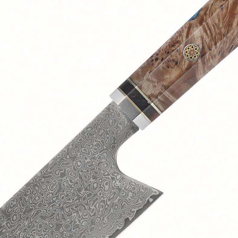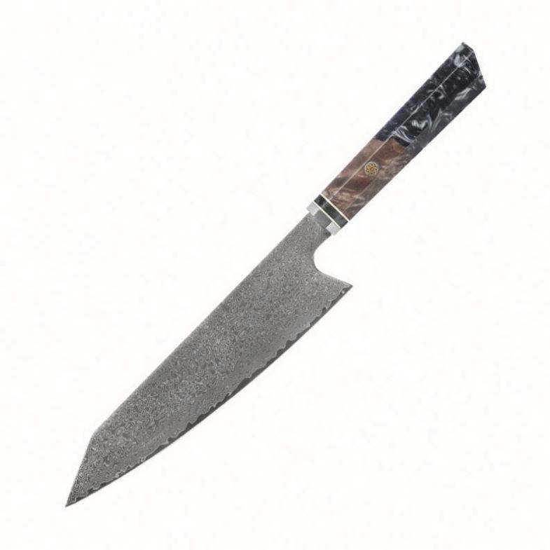 มีดครัวเหล็กดามัสกัส 8 นิ้ว 67 ชั้น ผลิตแบบดั้งเดิมของญี่ปุ่น ด้ามไม้ทรงตัวได้ ใช้ได้ทั้งมือซ้ายและขวา