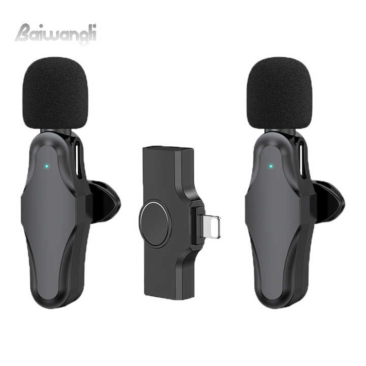 ไมโครโฟนไร้สายแบบหนีบปกเสื้อ รุ่น K21 Mini สำหรับมืออาชีพ วัสดุโลหะ 2 in 1 บันทึกเสียงและวิดีโอความคมชัดสูง สำหรับ iPhone