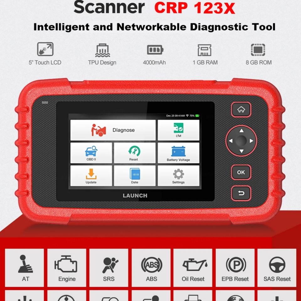 เครื่องมือวิเคราะห์ยานยนต์แบบมืออาชีพ LAUNCH CRP123X OBD2 สแกนเนอร์สำหรับรถยนต์และเครื่องยนต์ ใช้พลังงานจากแบตเตอรี่ 5V