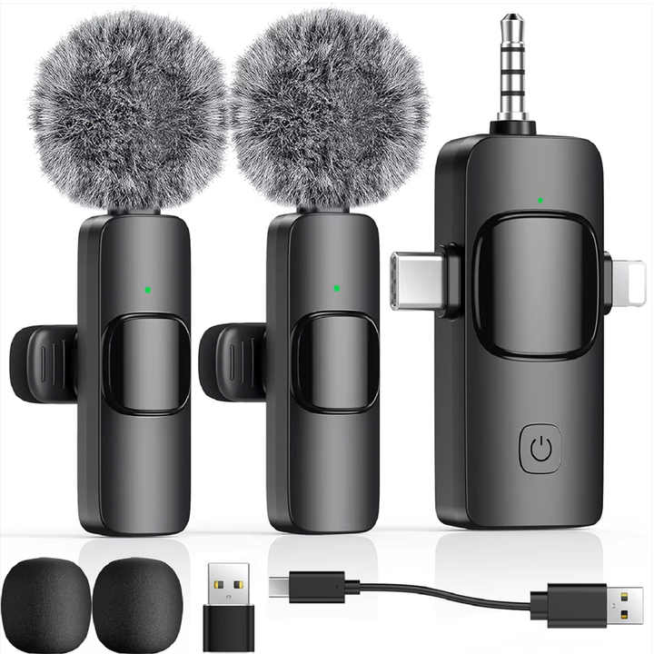 ไมโครโฟนไร้สายแบบ3 in 1ของคอเสื้อแบบมืออาชีพ, USB-C ไร้สายแบบมินิไมโครโฟนลาวาเลียร์แบบไร้สาย