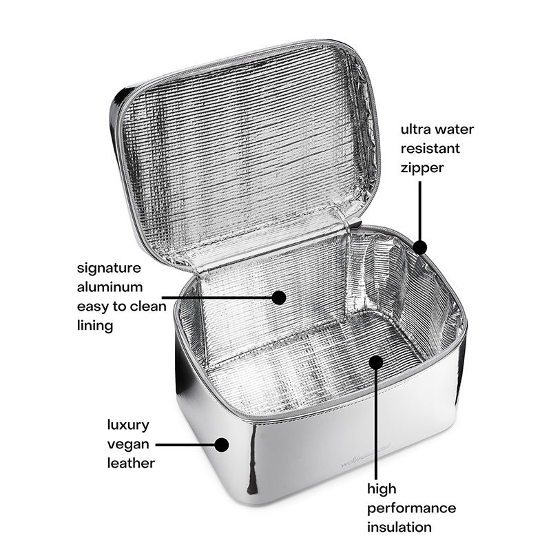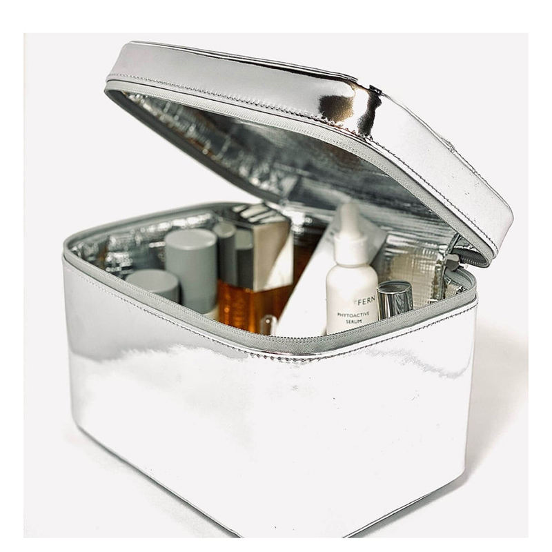 กระเป๋าเครื่องสำอางสำหรับผู้หญิง,กระเป๋าเครื่องสำอางมืออาชีพใบใหญ่กระเป๋าหนังวีแกนทำจากอะลูมิเนียมหุ้มฉนวน