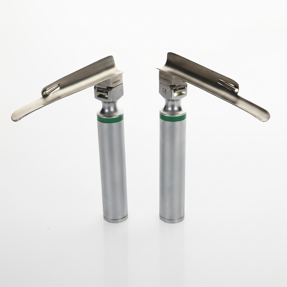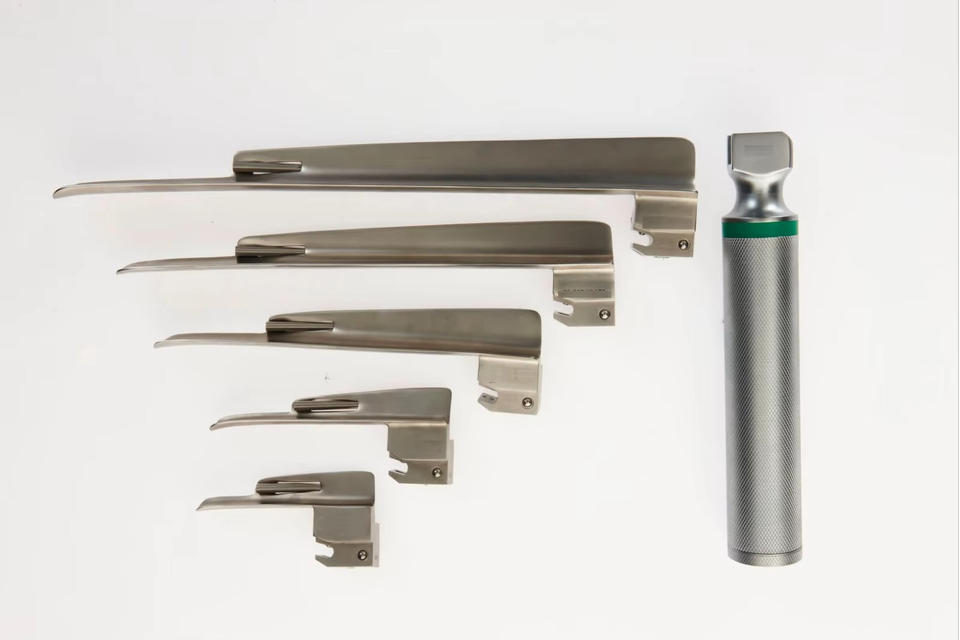 ชุดเครื่องมือส่องกล่องเสียงแบบมืออาชีพ พร้อมกระเป๋าพกพา ประกอบด้วยใบมีดตรง 5 แบบ พร้อมด้ามจับ และเครื่องมือส่องกล่องเสียงแบบใยแก้วนำแสง Miller