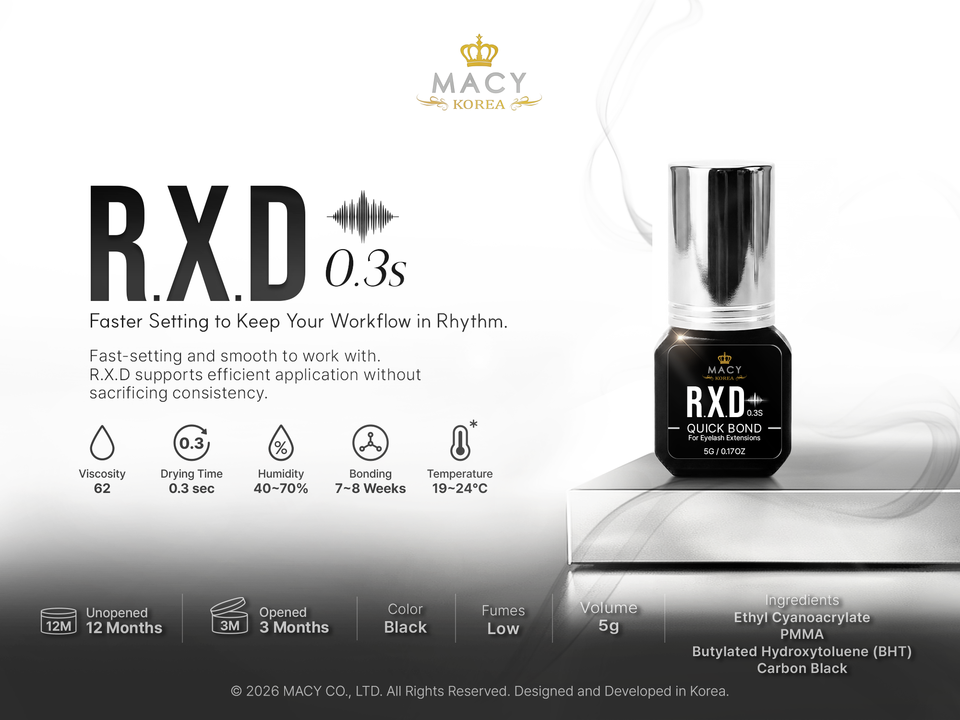 กาวติดขนตาปลอมสำหรับต่อขนตา ยี่ห้อ Korea RXD สีดำ ติดทนนาน 7-8 สัปดาห์ แห้งเร็วภายใน 0.3 วินาที ขนาด 3 กรัม 5 กรัม รับผลิตตามสั่ง