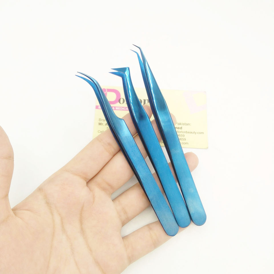 แหนบต่อขนตาแบบมืออาชีพ สแตนเลสสตีล รับทำโลโก้ แหนบต่อขนตาคุณภาพสูง แหนบพลาสมาสีน้ำเงิน