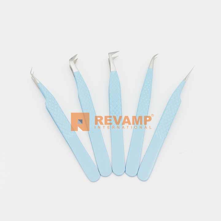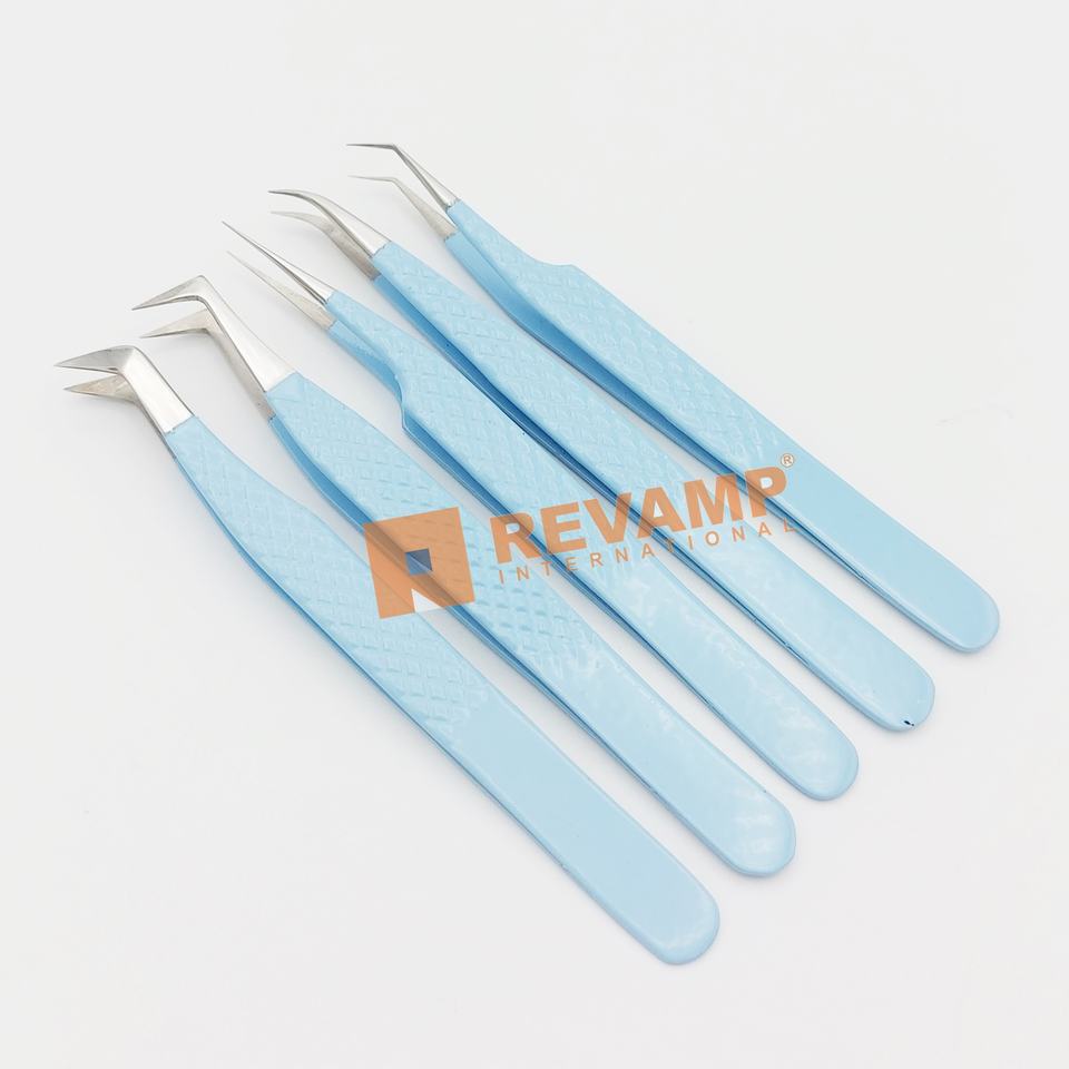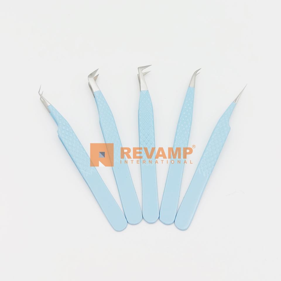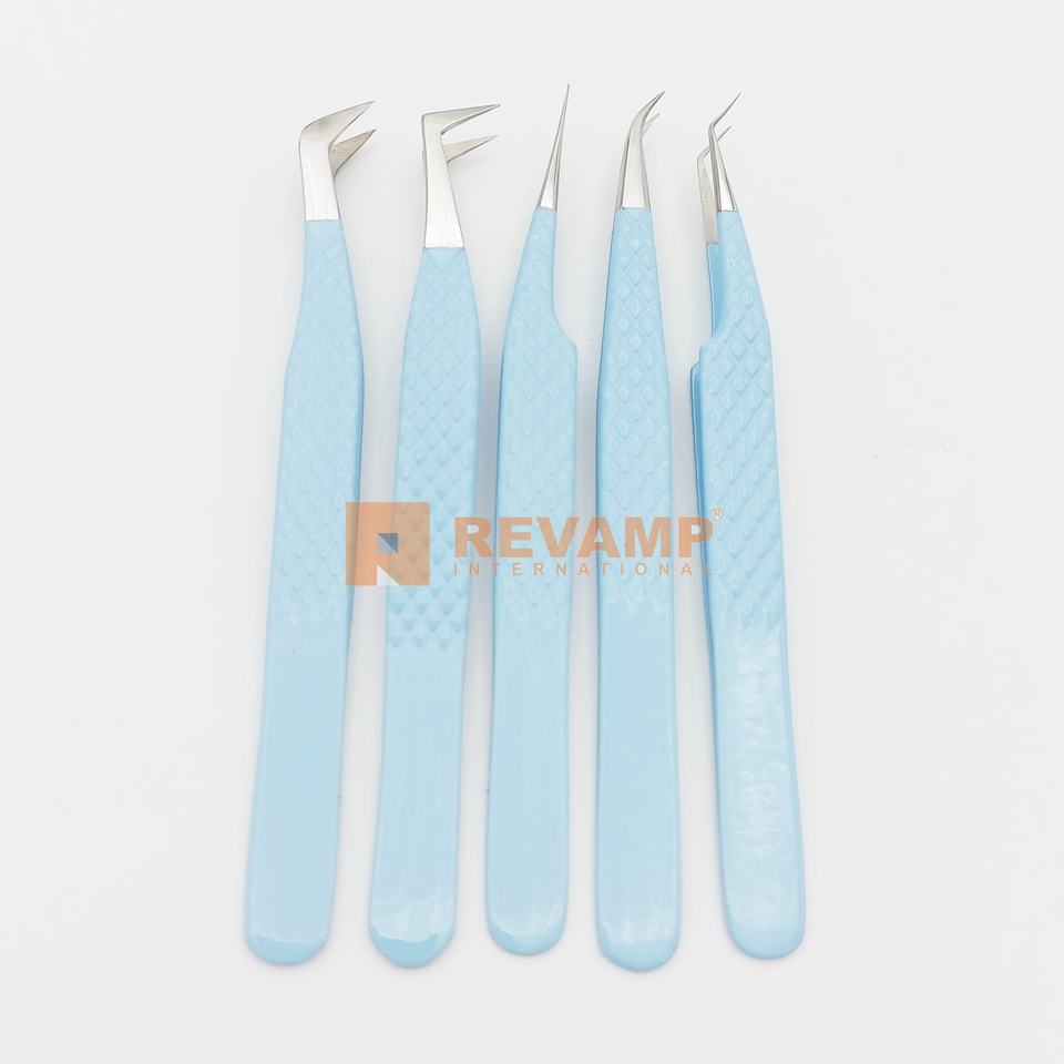 แหนบสำหรับขนตาปลอมแบบมืออาชีพคีมหนีบขนตาสีฟ้าแบบญี่ปุ่นสแตนเลสคุณภาพสูง