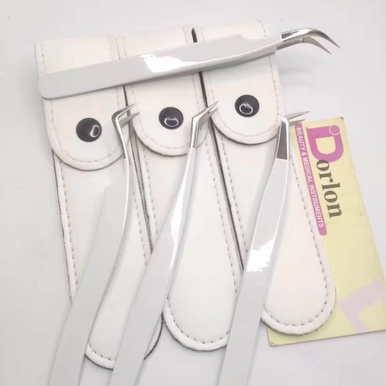 แหนบต่อขนตาโค้ง ป้องกันไฟฟ้าสถิตย์ ผลิตจากเหล็กกล้าไร้สนิมญี่ปุ่น ยี่ห้อโดร์ลอน สีขาวเคลือบผิว ทนทาน