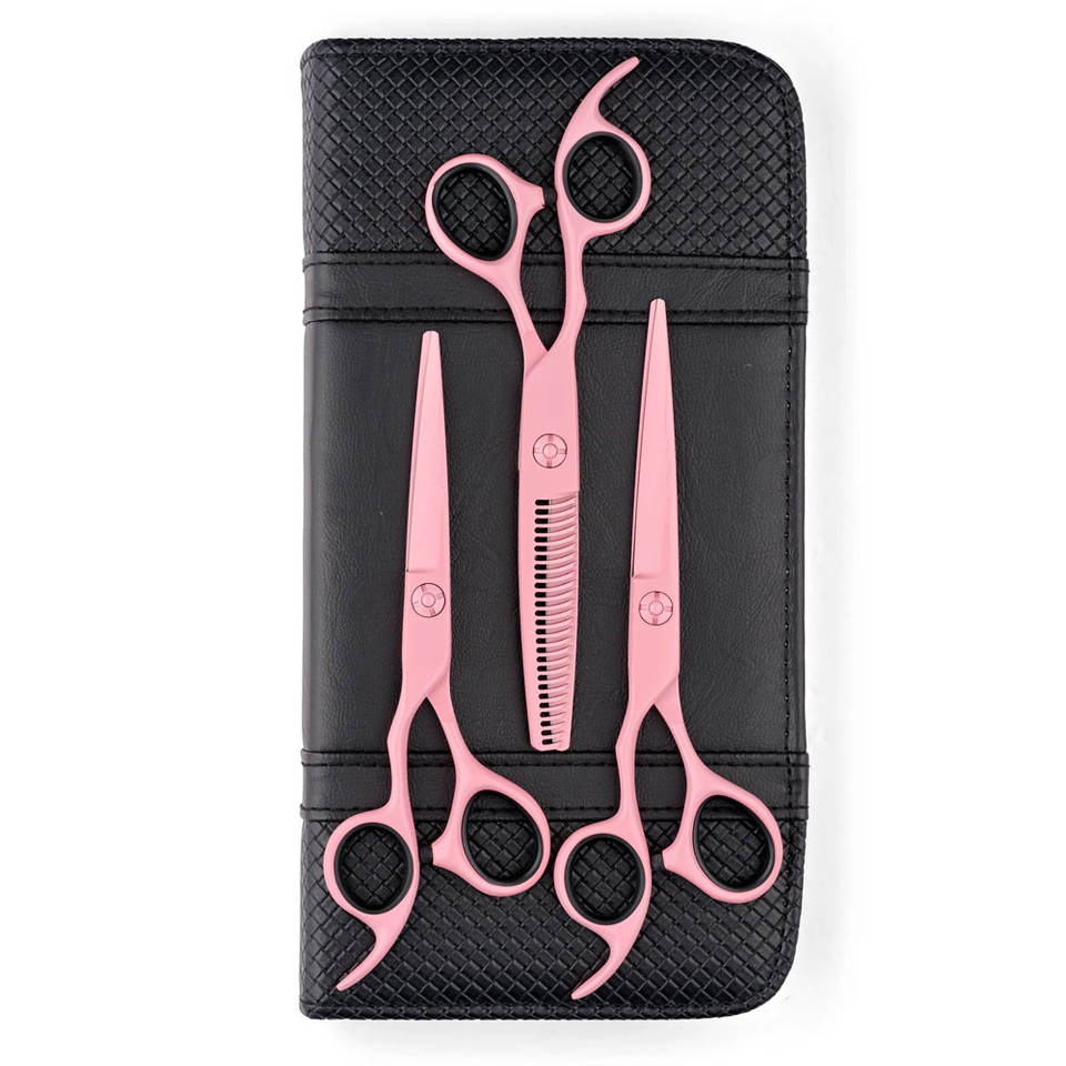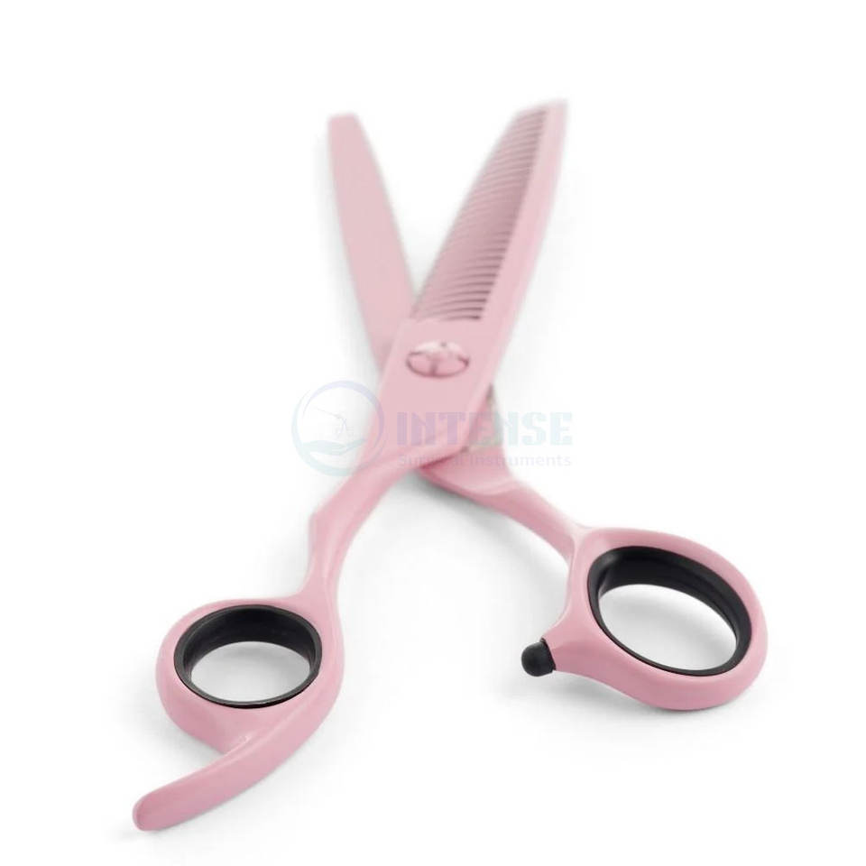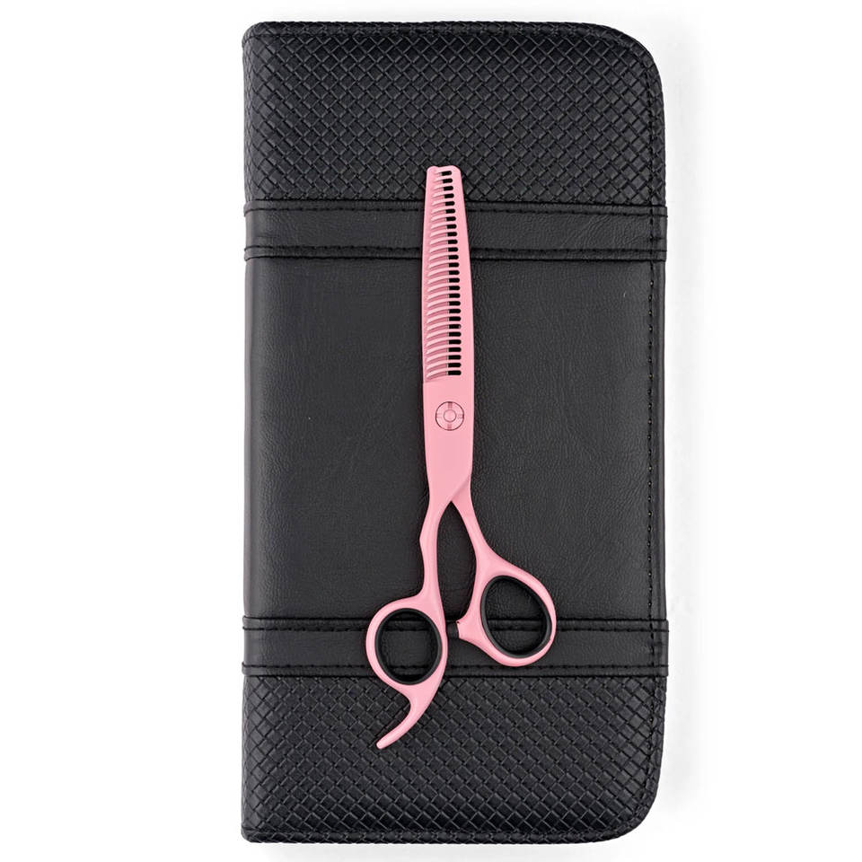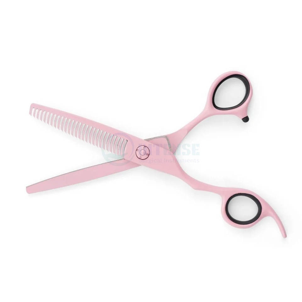 กรรไกรซอยผมมืออาชีพสำหรับคนถนัดซ้าย สีชมพู ทำจากเหล็กกล้าไร้สนิมคุณภาพสูง ฟันคม สำหรับร้านตัดผม