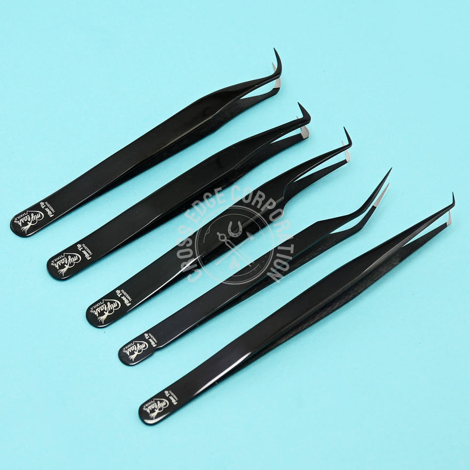 แหนบปลายไฟเบอร์สำหรับต่อขนตาแบบวอลลุ่ม 90 องศา