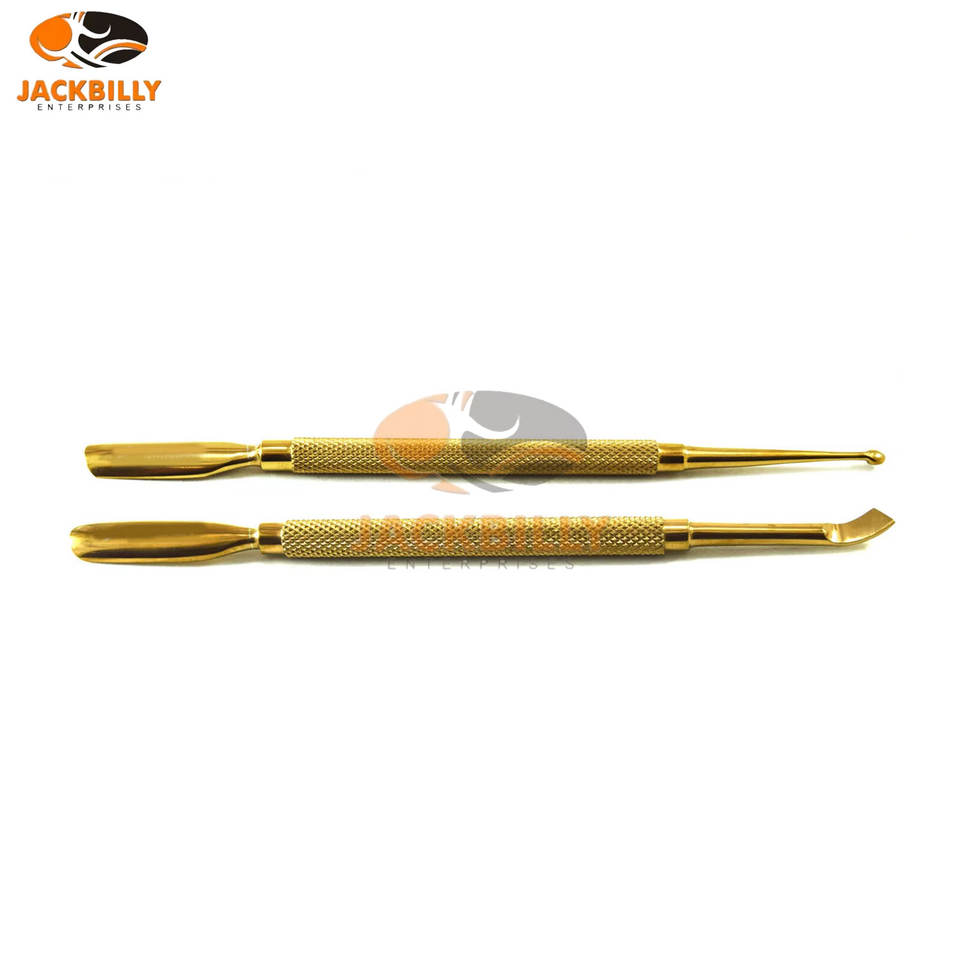 ที่ดันเล็บสแตนเลสสองด้านเครื่องกำจัดหนังกำพร้าแบบมืออาชีพมาตรวัดความงามแบบช้อนฮอกกี้