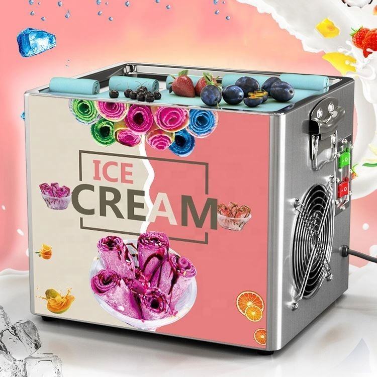 เครื่องทำไอศกรีมสแตนเลสม้วนผลไม้จริงเครื่องทำไอศกรีมทำไอศครีมด้วยมือแบบมืออาชีพ