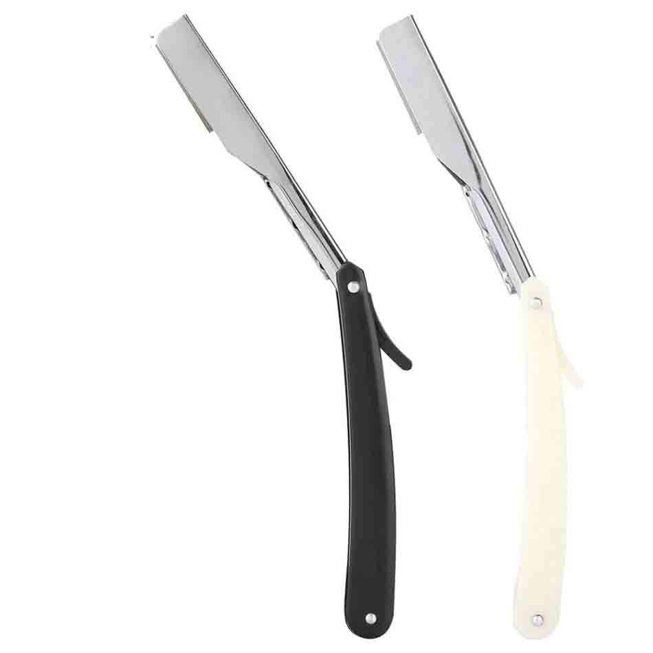 มีดโกนหนวดแบบมืออาชีพ ใบมีดตรง สแตนเลสสตีล คมกริบ พับได้ พร้อมใบมีดสำรอง