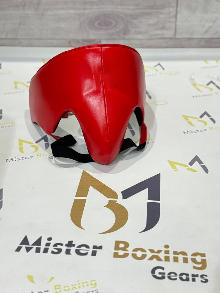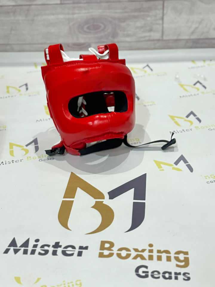 ชุดอุปกรณ์มวยสำหรับมืออาชีพ สีแดง ประกอบด้วยหมวก ถุงมือ และอุปกรณ์ป้องกันอวัยวะเพศชาย สำหรับฝึกซ้อมและการต่อสู้