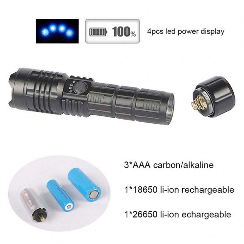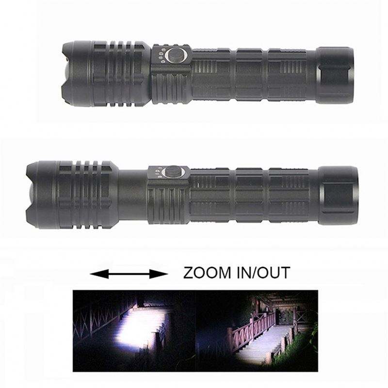 ไฟฉาย LED XHP50แบบซูมได้ชนิดเสียบ USB และชาร์จไฟได้กันน้ำทำจากอลูมิเนียม