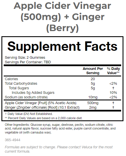 ชื่อผลิตภัณฑ์:น้ำส้มสายชูแอปเปิ้ลไซเดอร์ (500มก.) + เยลลี่ขิง (เบอร์รี่)