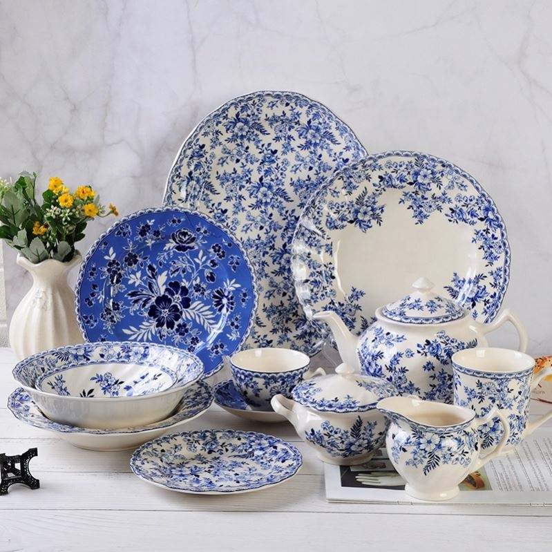 เครื่องลายครามสีน้ำเงินและสีขาว