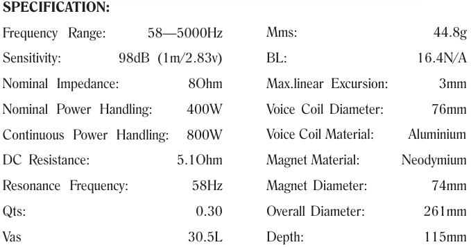 อิมพีแดนซ์:4 -16โอห์ม