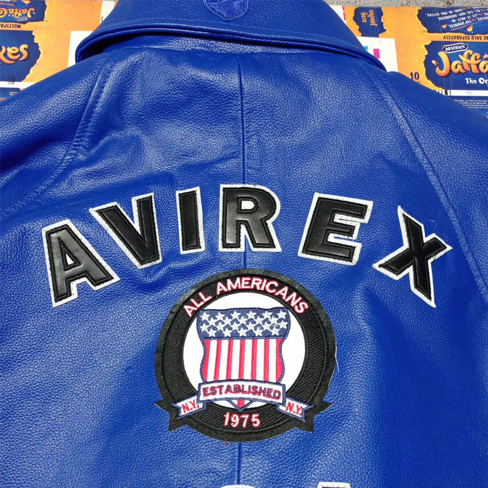 แจ็คเก็ตหนัง Avirex น้ำหนักเบา2025สไตล์สตรีทแวร์แจ็คเก็ตหนังสีทึบใหม่