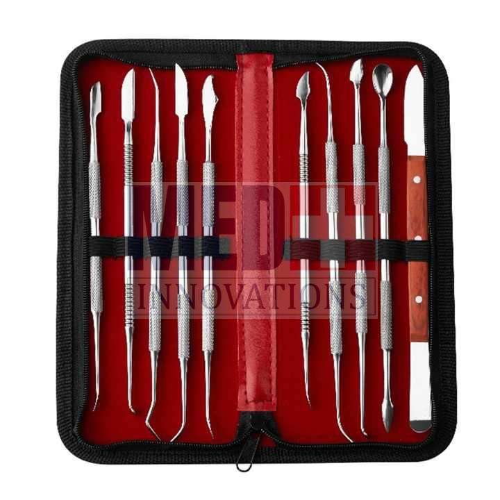 ชุดเครื่องมือแกะสลักขี้ผึ้งทางทันตกรรม 10 ชิ้น ทำจากสแตนเลส พร้อมกล่องเก็บ