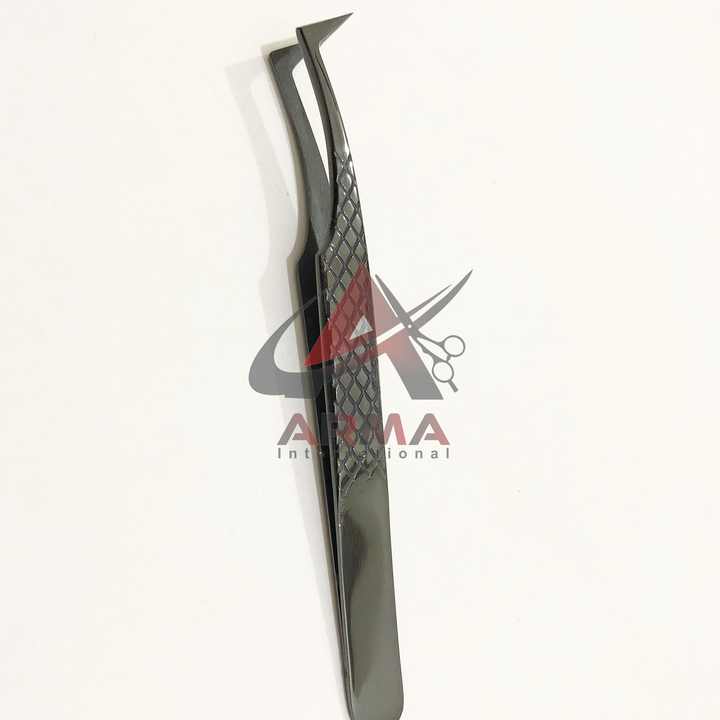 แหนบต่อขนตาทำจากสเตนเลสสีดำพลาสม่าแบบมืออาชีพปลายแหลมแบบยั่งยืนสำหรับฉลากส่วนตัว