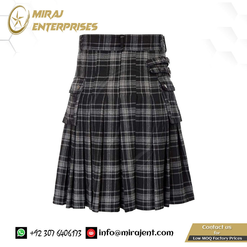 กระโปรงสั้นลายตารางของผู้ชายแบบมืออาชีพในสไตล์สก็อตไฮแลนด์แบบดั้งเดิมพร้อมดีไซน์กลองและทูบาที่ใช้งานได้จริง