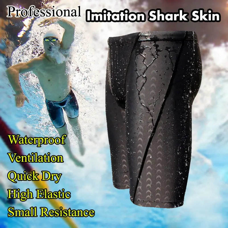 กางเกงว่ายน้ำชายไซส์ XXL สำหรับแข่งขัน เอวกลาง ลายพิมพ์สีเดียว แห้งเร็ว สปอร์ต เหมาะสำหรับชายหาด ผลิตจากโพลีเอสเตอร์ผสมสแปนเด็กซ์