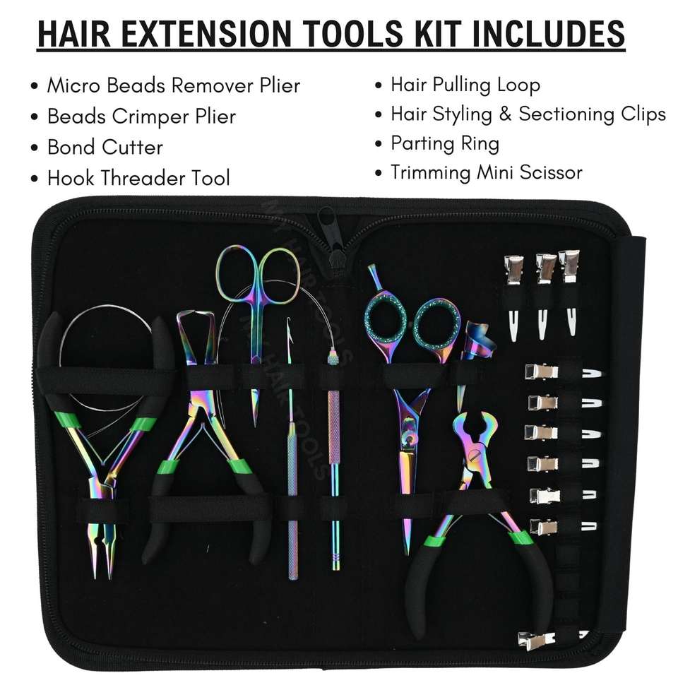ชุดเครื่องมือต่อผมแบบมืออาชีพ พร้อมคีมจีบและถอดไมโครบีด พร้อมที่ตัดเคราติน ห่วงเกี่ยว และอุปกรณ์เสริม