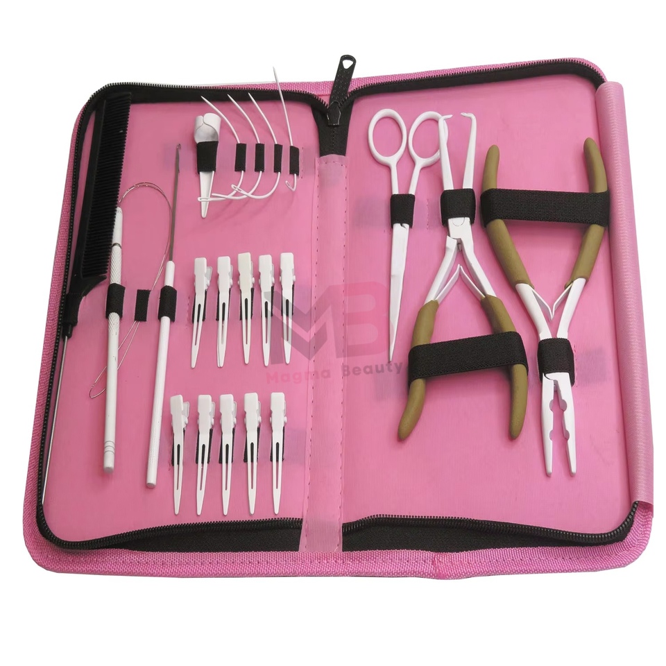 ชุดอุปกรณ์ต่อผมไมโครลิงค์แบบมืออาชีพ คีมสแตนเลส เทปต่อผม อุปกรณ์เสริมสำหรับร้านเสริมสวย ชุดอุปกรณ์ต่อผม