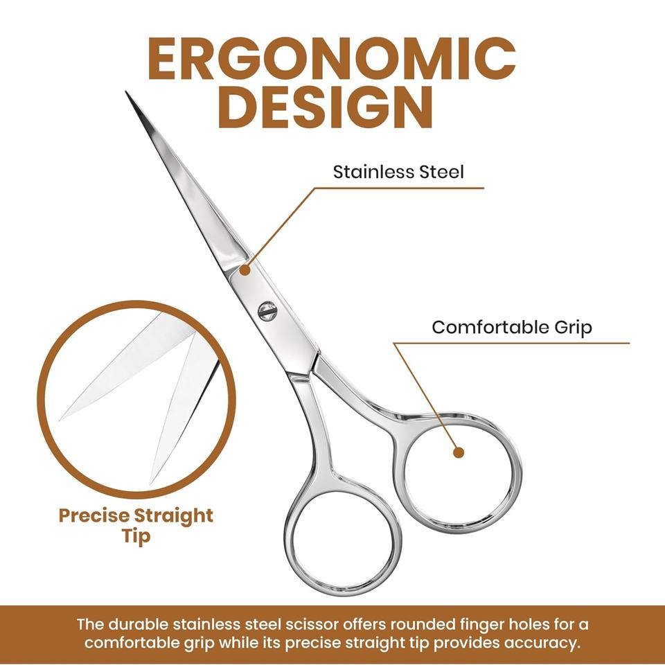 กรรไกรตัดแต่งขนอเนกประสงค์ สแตนเลสอย่างดี สำหรับคิ้ว ขนจมูก หนวด และหนังกำพร้า - สำหรับผู้ชายและผู้หญิง