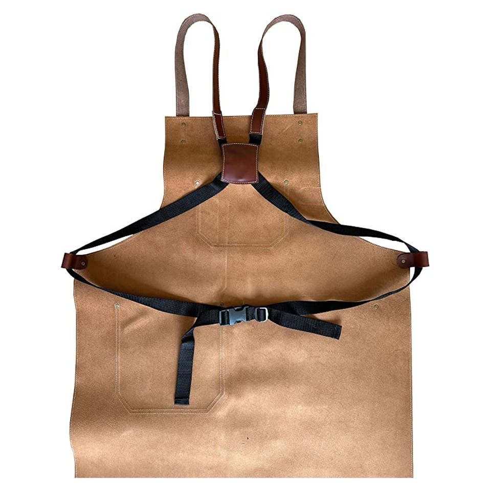 ผ้ากันเปื้อนหนังวัวแท้อเนกประสงค์แบบมืออาชีพผ้ากันเปื้อนสำหรับช่างตัดผมหนัง