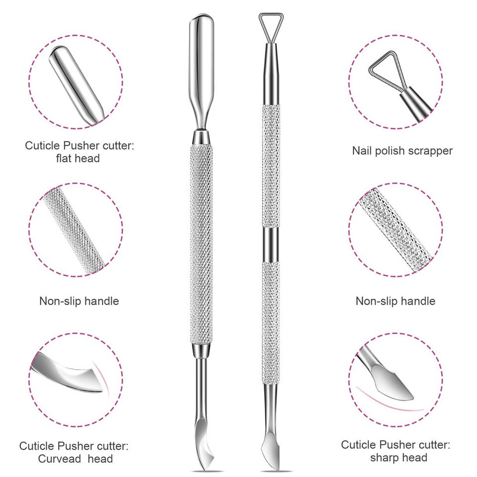 เครื่องมือดูแลเล็บมืออาชีพ เครื่องมือดันหนังกำพร้า เครื่องมือทำเล็บ กำจัดหนังกำพร้า เครื่องมือทำเล็บปลายคู่สแตนเลส