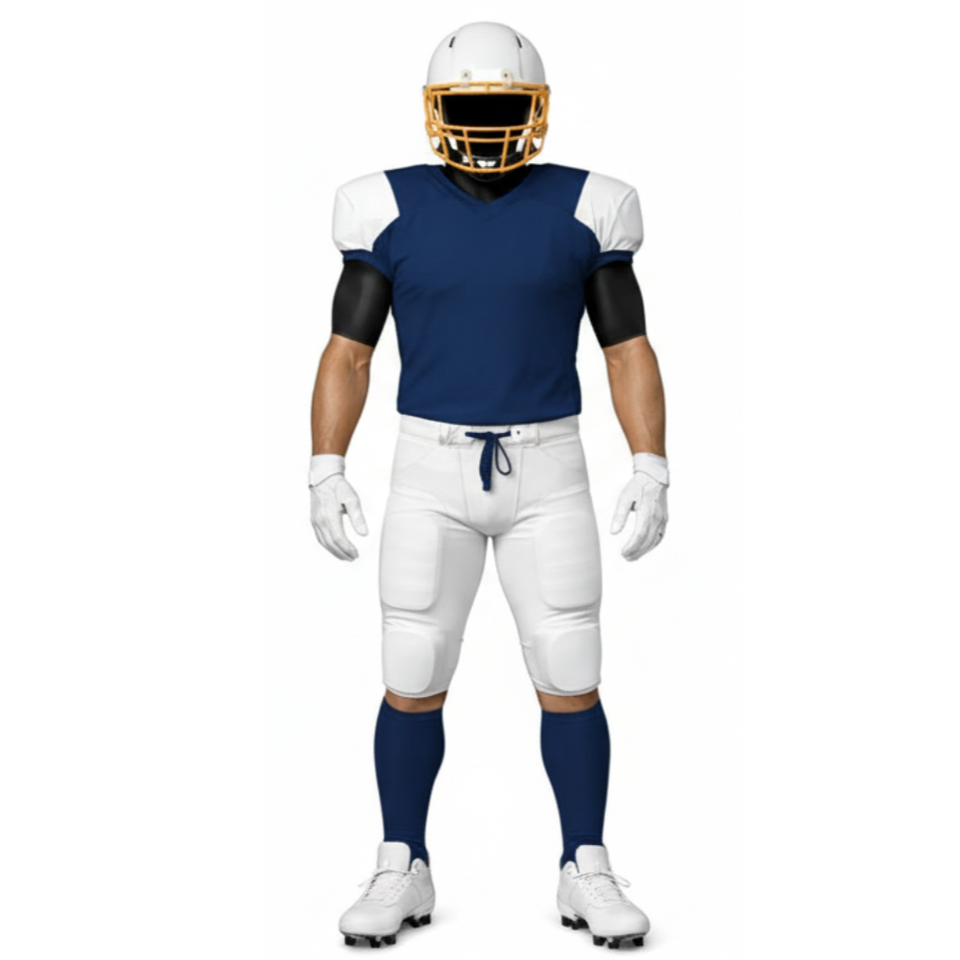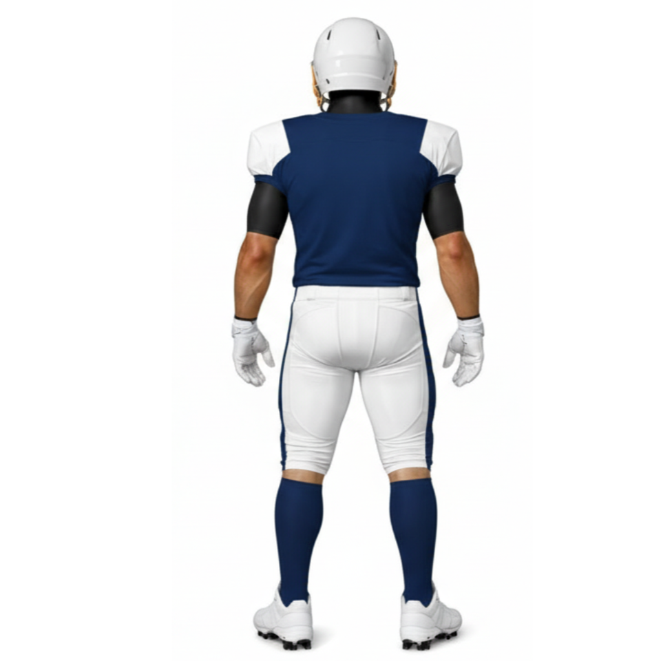 ชุดยูนิฟอร์มอเมริกันฟุตบอลแบบมืออาชีพ สีกรมท่าและสีขาว พร้อมกางเกงกีฬาแบบดั้งเดิม