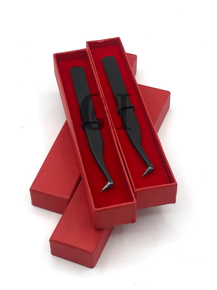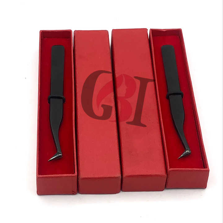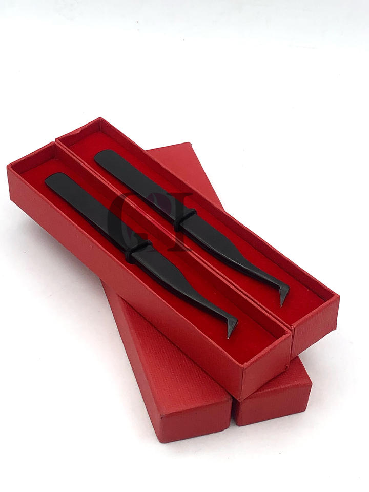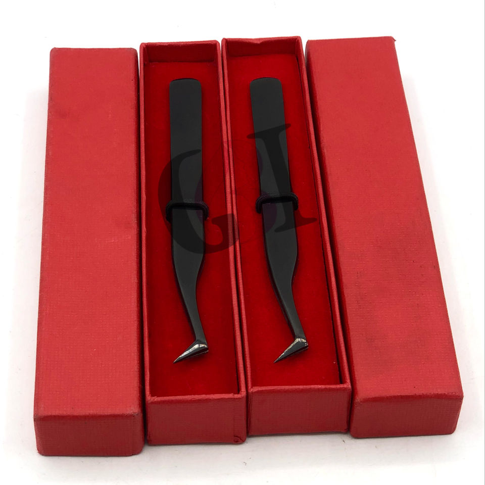 แหนบต่อขนตาทำจากสเตนเลสปลายนาโนพลาสม่าสีดำอุปกรณ์เสริมความงามโลโก้แบบกำหนดเองใหม่สำหรับมืออาชีพ