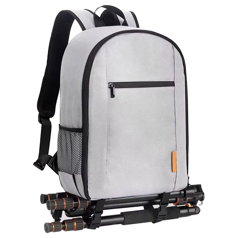 กระเป๋าเป้สะพายหลังสำหรับกล้องถ่ายรูปแบบมืออาชีพ ทำจากไนลอน มีที่ยึดขาตั้งกล้อง สายสะพายคู่ พร้อมผ้าคลุมกันฝน กันน้ำ มีซิปปิด