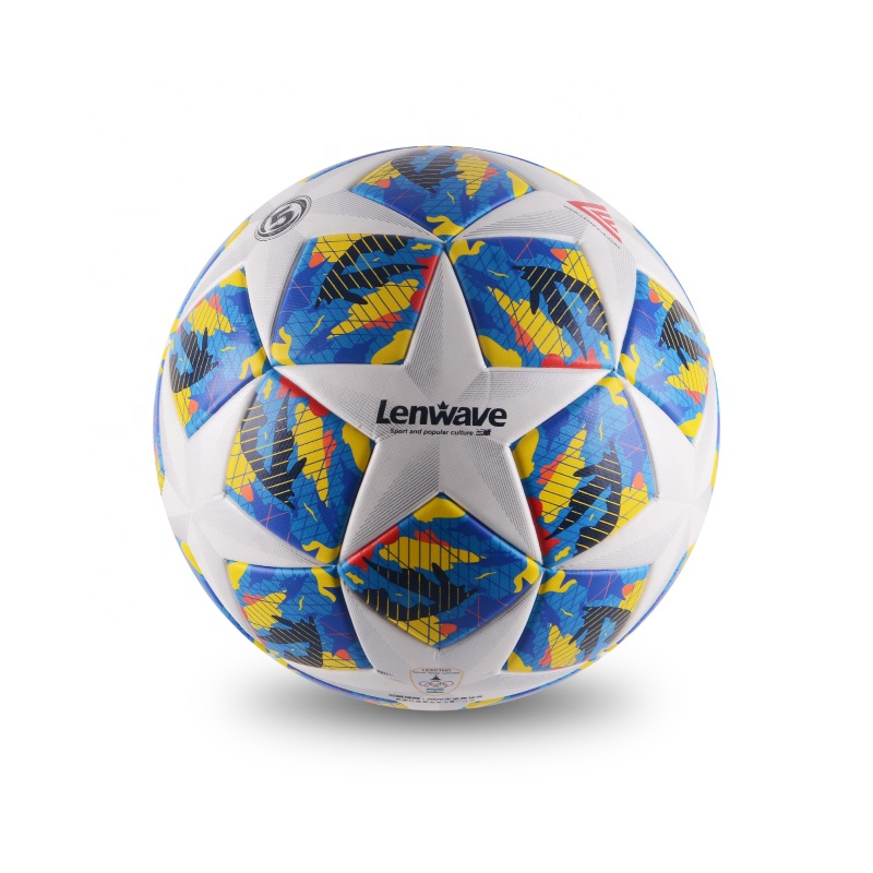 ลูกฟุตบอลไนลอนแบบมืออาชีพ ขนาด 5 แบบเชื่อมด้วยความร้อน ออกแบบเองได้ สำหรับการแข่งขันอย่างเป็นทางการ ใช้ได้ทั้งในร่มและกลางแจ้ง สำหรับการฝึกซ้อม