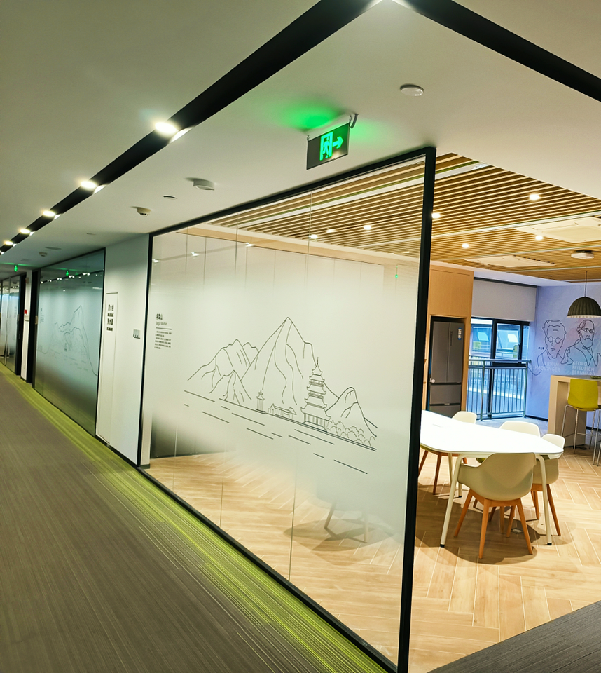 พาร์ทิชันกระจกสำนักงานแบบมืออาชีพพร้อมกรอบอลูมิเนียมสำหรับพื้นที่ทำงานที่ทันสมัยห้องประชุม