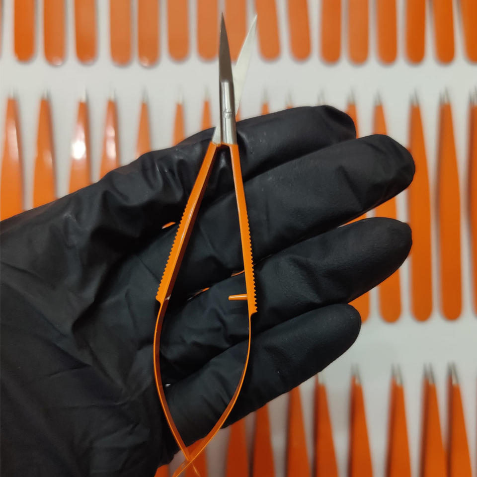 ชุดแหนบและกรรไกรเล็มคิ้วปลายแหลมสีส้มแบบมืออาชีพชุดกรรไกรสำหรับกำจัดขนใช้งานเพื่อความงามพร้อมกระเป๋า PU