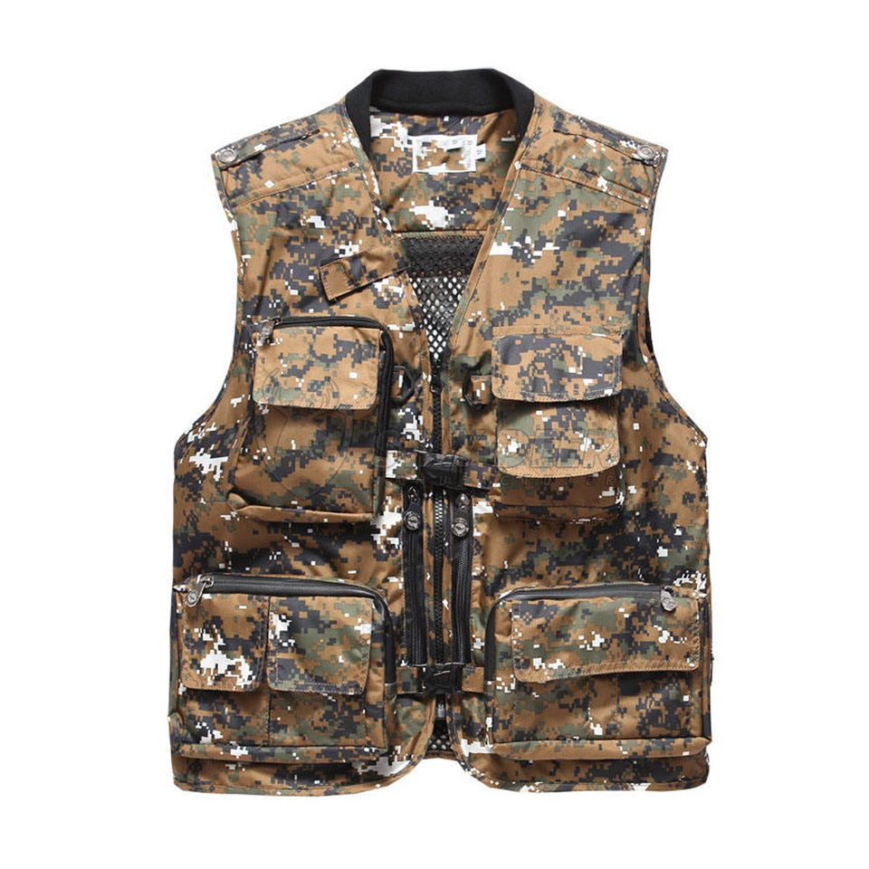 เสื้อกั๊กยุทธวิธีสำหรับการยิงปืนกลางแจ้งระดับมืออาชีพสำหรับผู้ชาย ปรับขนาดได้และมีกระเป๋าหลายช่อง
