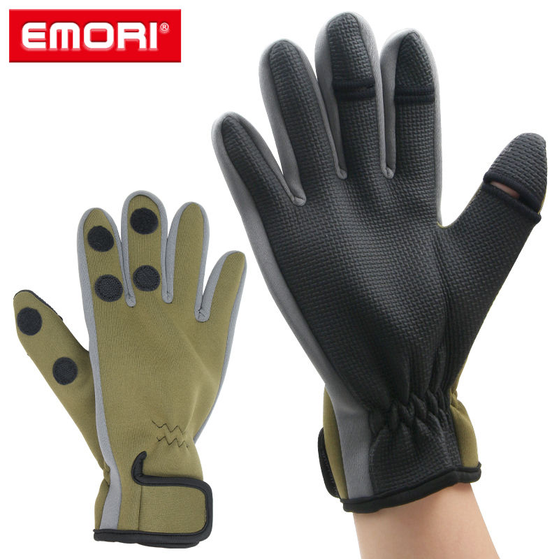 ถุงมือตกปลากันน้ำสำหรับกีฬากลางแจ้ง นีโอพรีน สำหรับตกปลาบนน้ำแข็งและล่าสัตว์ พร้อมคุณสมบัติกันลื่น