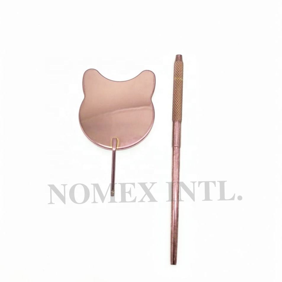 แหนบขนตาปลอมรูปทรงแพนด้าสำหรับมืออาชีพด้ามจับทำจากสเตนเลสสตีลสีโรสโกลด์ออกแบบโลโก้ได้ตามต้องการ